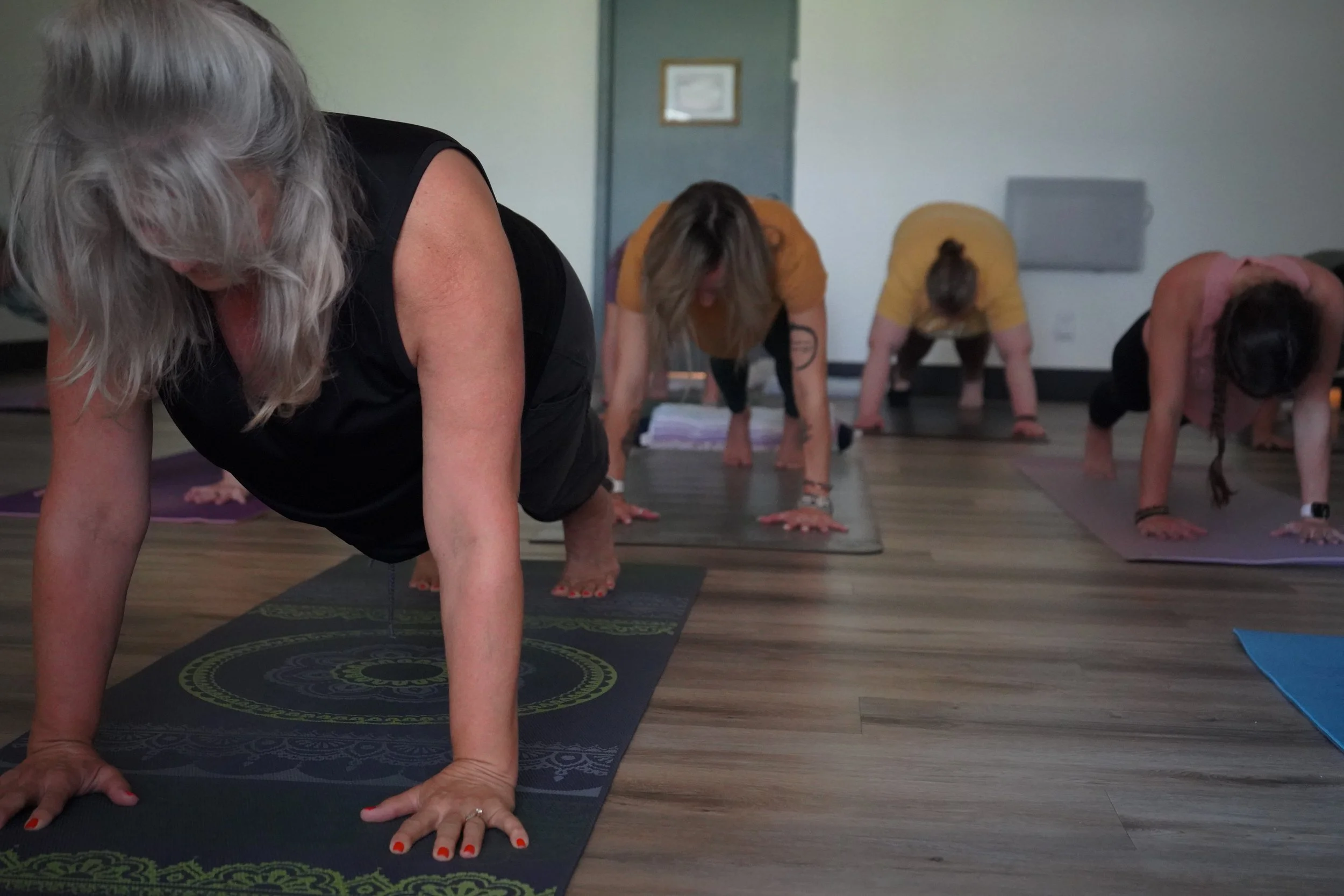 This class will emphasize longer holds and be more gradual to allow a deeper focus on alignment and breath. There will be up and down from the mat however physicality and sequences in these classes are less intense while still providing a rounded practice that can build strength and flexibility. This is a great class to try if you want to a moderate challenge to the body with the meditative and restoring benefits of moving slower.